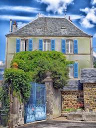 Keywords: saillant france house home architecture trees gate wall sky clouds outside hdr