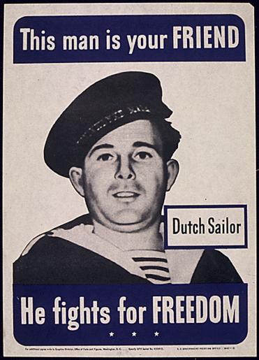 | Keywords: Sailor Koninklijke Marine.gif en THIS MAN IS YOUR FRIEND DUTCH SAILOR NARA-image 515797 Office of War Information WW II PD-USGov Netherlands in World War II Navy of the Netherlands This Man Is Your Friend He Fights For Freedom Sailors in propaganda |