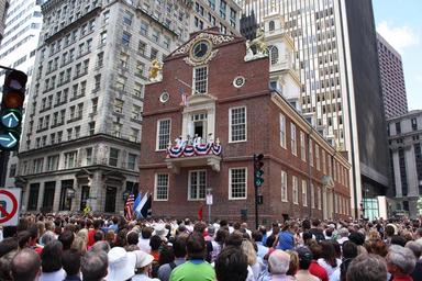 Keywords: Sailor of the Year 090704-N-UI352-068.jpg en 090704-N-UI352-068 BOSTON Mass July 4 2009 USS Constitution Sailor of the Year Navy Counselor 1st Class Paul Grunder at mic leads a crowd of thousands in the Pledge of Allegiance at the Old State House in Boston on the morning of July 4th Also on the balcony assigned to Old Ironsides are Storekeeper 1st Class Benjamin Hanson left and Electrician's Mate 1st Class Michael Pendergraft The event was part of the annual 4th of July Flag Raising Ceremony which began at Boston City Hall Plaza and paraded to the Old State House where a member of the Ancient and Honorable Artillery Company of Massachusetts completes the tradition by reading the Declaration of Independence to the crowd The ceremony was just one of his many Navy events scheduled during the Independence Day Weekend at the end of Boston Navy Week Navy Weeks are designed to show Americans the investment they have made in their Navy and increase awareness in cities that do not have a significant Navy presence U S Navy photo by Chief Mass Communication Specialist Dave Kaylor/Released Unit Defense Imagery Management Operations Center DVIDS Tags DIMOC; DVIDS Bulk Import 2009-07-04 1st Sgt John D Kaylor https //www dvidshub net/image/1575993/sailor-year 090704-N-UI352-068 2014-10-07 22 43 BOSTON MA US PD-USGov-Military-Navy USS Constitution ship 1797 Images from DoD uploaded by Fæ |