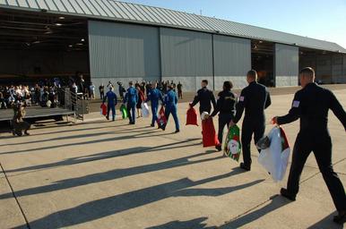 | Keywords: Sailors deliver toys DVIDS346729.jpg en Sailors and Marines assigned to the U S Navy flight demonstration squadron the Blue Angels carry bags of toys to Naval Air Station Joint Reserve Base New Orleans The Blue Angels delivered thousands of toys donated by Lockheed Martin employees to the Marine Corps Reserve Forces Command Toys for Tots program Toys R Us also donated 1 million in toys to the program Marines will distribute the toys to families in the Greater New Orleans Area during the holiday season <br>Unit Navy Media Content Services 2010-12-03 U S Navy photo by Petty Officer 3rd Class Andrew Johnson https //www dvidshub net/image/346729/sailors-deliver-toys 101203-N-+++++-196 2010-12-06 17 35 FORT WORTH TX US PD-USGov-Military-Navy Blue Angels Images from DoD uploaded by Fæ |