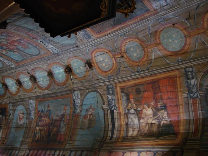 Keywords: Saint Cornély 09.jpg Eglise Saint Cornély à Carnac Décor intérieur 18ème siècle Détail des peintures de la voûte représentant la vie de St Cornély Saint Cornely Church Carnac church in Brittany France The inside 18th century The painted ceiling Own 03/08/07 Vassil Église Saint-Cornély de Carnac Church paintings in Morbihan |