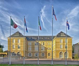 Keywords: saint-cyr-au-mont-d'or france national academy of law enforcement building government architecture flags hdr