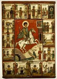 Keywords: Saint George (14th c., GRM).jpg ЧУДО СВЯТОГО ГЕОРГИЯ О З ИЕ С ЖИТИЕ Пе вая половина XIV века овго од Де ево; темпе а 89 5 х 63 0 х 2 5 Поступила в 1897 году из АХ До 1851 года находилась в соб ании П Погодина осква затем в Синодальной изнице и и ова енной палате осковского К емля откуда в составе всей коллекции в 1870 году была пе едана в АХ Раск ыта до поступления в музей повто но в 1912 году в ГР Г И Чи иковым ГР инв ДРЖ-2118 http //www svyatayarus ru/data/icons/90_chudo_o_zmie/index php Пе вая половина XIV века 14 Exhibition Sainte Russie Moscow 2011 - icons Miracle of Saint George vita icon 14th c Russian Museum Files uploaded by Shakko from various sources PD-Art