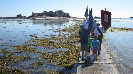 Keywords: Saint Hélyi pèlerinnage 2010 19.jpg Pèlerinnage de Saint Hélyi Jèrri 18 dé Juilet 2010 Saint Helier pilgrimage Saint Helier Jersey 18 July 2010 Hélier de Jersey - fête patronale de Saint-Hélier Jersey 18 juillet 2010 self-photographed 18 dé Juilet 2010 Man vyi Own work all rights released Public domain 2010 in Saint Helier Jersey People of Jersey in 2010 Saint Helier Pilgrimage 2010 Low tide in the Channel Islands Causeway Elizabeth Castle Religious standards