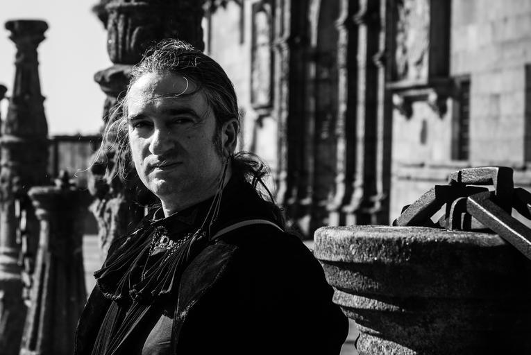 Keywords: saint james compostela spain gothic man black and white local spanish
