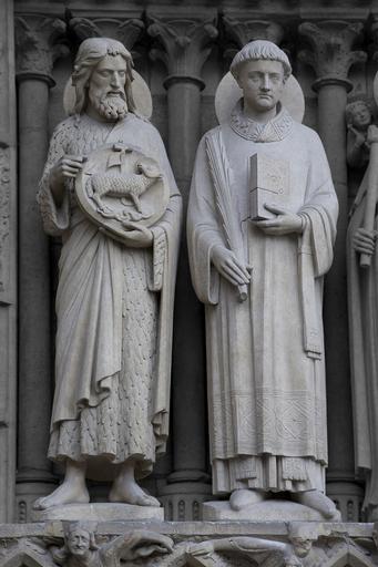 | Keywords: Saint Jean Baptiste Saint Etienne Notre Dame Paris a.jpg en Saint John the Baptist and Saint Stephen Western façade left Portal the Virgin portal of Notre-Dame de Paris France Theses statues are reconstructions from the 19th century of Middle-ages statues fr Saint Jean Baptiste et Saint Etienne Portail gauche façade ouest Le portail de la Vierge de Notre-Dame de Paris Ces statues sont des reconstitutions du XIXème siècle de statues du Moyen-Âge own Jebulon 2011-03-13 48 51 11 5 N 2 20 56 4 E Background darkened and blurred A bit sharpening of statues GIMP Statues of Saint John the Baptist in France Statues of Saint Stephen Quality images by Jebulon Quality images of Cathédrale Notre-Dame de Paris Cc-zero QualityImage Details of the Portail de la Vierge |