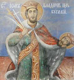 | Keywords: Saint Jovan Vladimir, Lozen Monastery.jpg en Fresco of Saint Jovan Vladimir in the church of the Lozen Monastery Bulgaria http //picasaweb google com/lh/photo/lxa9PTo7AhIuLzCawN2x0Q Creator Nikola Obrazopisov 1869<sup>http //iconi komentiram com/манасти и-в-лозенска-планина html</sup> PD-old-100 Jovan Vladimir |