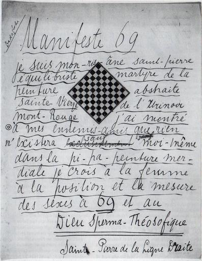 | Keywords: Saint-Pierre de la Ligne Droite Manifeste 69.jpg  ink collage paper cm 27 4 21 3 Bibliothèque littéraire Jacques-Doucet 1921 1 black and white image object history - 1921 1963 Tristan Tzara 1896-1963 Paris ProvenanceEvent 1963 inheritance Christophe Tzara Tristan Tzara Paris ProvenanceEvent 1967 acquisition LangSwitch the la de Bibliothèque littéraire Jacques-Doucet Paris Christophe Tzara exhibition history Van Doesburg and the International Avant-Garde 256 London ˜I K Bonset Theo van Doesburg Manifesto 69 Dadaglobe 1921 Handwritten manuscript with collage ™ credit line accession number BLJD cote TZR 783 44 Els Hoek ed ; 2000 Theo van Doesburg Oeuvrecatalogus Bussum Uitgeverij Thot ISBN 90-6868-255-5 p 697 PD-old Manuscripts by Theo van Doesburg Bibliothèque littéraire Jacques-Doucet Dadaglobe |