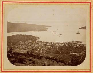 Keywords: Saint Thomas Island, Danish Possession in the Antilles- View from the Brazilian Observatory with the Sandbank and the East Part of the Harbor and the City Charlotte Amalie WDL1753.png Artwork ru Б азильская аст ономическая комиссия fr Commission astronomique du Brésil en Brazilian Astronomical Commission zh 巴西天文委员会 pt Comissão Astronômica Brasileira ar المفوضية الفلكية البرازيلية es Comisión Astronómica Brasileña ru Ост ов Сент-Томас датские владения на Антильских ост овах вид с б азильской обсе вато ии включая песчаную отмель восточную часть бухты и го од Ша лотта-Амалия fr Île de Saint-Thomas territoire danois dans les Antilles  vue prise depuis l'observatoire brésilien montrant le banc de sable la partie est du port et la ville de Charlotte Amalie en Saint Thomas Island Danish Possession in the Antilles View from the Brazilian Observatory with the Sandbank and the East Part of the Harbor and the City Charlotte Amalie zh 托马斯岛,安的列斯群岛的丹麦属 :从巴西观测 到的沙洲 海港 部和夏洛特阿马利亚城的景观 pt Ilha de São Tomás posse dinamarquesa nas Antilhas vista a partir do observatório brasileiro com o baixio a parte leste do porto e a cidade de Charlotte Amalie ar جزيرة سانت توماس، الأراضي الدنماركية بالأنتيل منظر من المرصد البرازيلي يضم الجرف الرملي والجزء الشرقي من الميناء ومدينة شارلوت أمالي ru Эта фотог афия соде жится в альбоме созданном в память об участии Б азилии в междуна одном наблюдении за п охождением Вене ы в 1882 году С этой целью Импе ато ская обсе вато ия пост оила на ост ове Сент-Томас в датской Вест-Индии сов еменные Аме иканские Ви гинские ост ова обсе вато ию названную в честь импе ато а Дома Пед у II 1825 1891 гг П охождение Вене ы п едставляет собой едкое аст ономическое явление в ходе кото ого Вене у п оходящую между Землей и Солнцем можно увидеть в дневное в емя на фоне солнечного диска П охождения Вене ы наблюдаются па ами с инте валом в восемь лет после чего следует пе е ыв п одолжительностью более столетия С XVII века аст ономы стали п оявлять к этому явлению особый инте ес поскольку оно давало возможность п именяя данные многочисленных наблюдений и сложные математические асчеты вычислить асстояние между Землей и Солнцем аст ономическую единицу Таким об азом п охождения 1874 и 1882 годов оказались в цент е п истального внимания научных к угов и общественности Данный альбом п едставляет собой часть коллекции Те езы К истины а ии из фондов ациональной библиотеки Б азилии Коллекция из 21 742 фотог афий соб анная импе ато ом Пед у II в течение его жизни и завещанная им национальной библиотеке включает в себя ши окий спект тем и от ажает достижения Б азилии и б азильцев в XIX веке азванная в честь импе ат ицы Те езы К истины а ии данная коллекция была в 2003 году включена в список национальных п оектов п ог аммы Ю ЕСКО Память ми а <br> алые Антильские ост ова; Ша лотта-Амалия Ви гинские ост ова ; Го ода и поселки; Гавани; Память ми а; аучные экспедиции; Ко абли; Вене а планета п охождение 1882 г fr Cette photographie est extraite d'un album commémorant la participation du Brésil à l'effort international visant à suivre le transit de Vénus en 1882 Pour ce projet l'Observatoire impérial établit un observatoire portant le nom de l'empereur Pierre II 1825-1891 sur l'île de Saint-Thomas dans les Indes occidentales danoises aujourd'hui les îles Vierges des États-Unis Le transit de Vénus est un événement astronomique rare qui se produit lorsque Vénus passe entre la Terre et le Soleil la rendant visible de jour par contraste sur le disque solaire Les transits surviennent par paire séparée de huit ans à des intervalles de plus d'un siècle partir du XVII<sup>e</sup> siècle les astronomes portèrent un intérêt particulier à ce phénomène qui leur donnait l'opportunité de déterminer à l'aide de nombreux calculs mathématiques complexes et observations la distance entre la Terre et le Soleil unité astronomique Les transits de 1874 et 1882 suscitèrent donc l'enthousiasme du public et de la communauté scientifique L'album fait partie de la collection Thereza Christina Maria de la Bibliothèque nationale du Brésil Composée de 21 742 photographies que l'empereur Pierre II réunit sa vie durant puis légua à la bibliothèque nationale la collection couvre divers sujets et détaille les réalisations du Brés