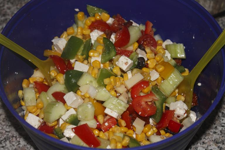 Keywords: salad colorful healthy vitamins food nutrition frisch tomato delicious eat paprika fish