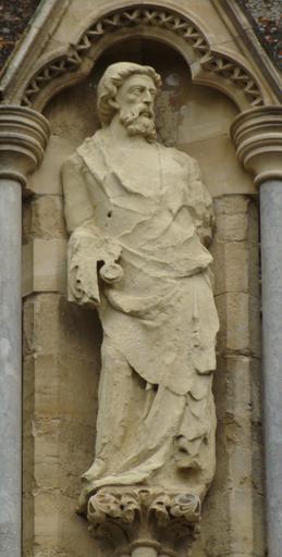 Keywords: Salisbury Cathedral St Peter.JPG en Statue of St Peter on the west front of Salisbury cathedral UK own Richard Avery Salisbury Cathedral - West Front Christian iconography St Peter