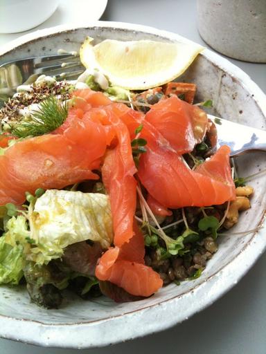 Keywords: salmon salad healthy fish food lunch fresh delicious eating diet nutritious lemon