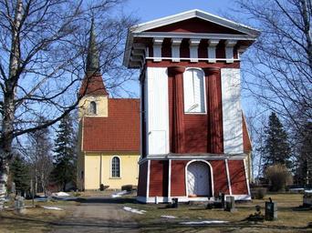 Keywords: Saloinen Church 20090418.JPG The Saloinen Church was built in 1932 There was an old church on the same place but it burned down in 1930 The bell tower was built in 1783 and it has said to been designed by Gustav III King of Sweden Saloisten kirkko on rakennettu 1932 Paikalla ollut vanha kirkko paloi 1930 Kellotapuli on rakennettu 1783 ja sen sanotaan olevan Ruotsin kuninkaan Kustaa III nnen suunnittelema Own 2009-04-18 Estormiz I grant anyone the right to use this work for any purpose Bell towers in Finland Raahe Built in Finland in 1783 Saloinen Church Saloinen Jacob Rijf Neoclassical architecture in Finland Taken with Fujifilm FinePix S9500 April 2009 in Finland 2009 in Raahe Churches in Finland photographed in 2009
