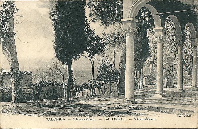 | Keywords: Salonique-CP-0021.jpg fr Salonique - Monastère des Vlatades - vers 1918 Carte postale - collection personnelle Auteur anonyme - éditeur Visé à Paris before 1919 PD-old Monastery of the Vlatades Arcades in Thessaloniki Columns in Thessaloniki Capitals architecture in Thessaloniki Postcards of Thessaloniki Thessaloniki in the 1910s |