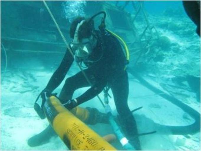 Keywords: Salvage and removal of sailing vessel Grendel 100712-N-YP236-001.jpg en U S Navy Diver 2nd Class Bailey assigned to Mobile Diving and Salvage Unit One assists in the salvage and removal of the sailing vessel Grendel from Papah Naumoku Kea Marine National Monument in Kure Atoll Hawaii July 12 2010 2010-07-12 U S Navy photo by Lt Jon Corkey/Released https //www dvidshub net/image/1215901 100712-N-YP236-001 2014-04-02 08 01 KURE ATOLL HI US PD-USGov-Military-Navy Mobile Diving and Salvage Unit 1 Images from DoD uploaded by Fæ |