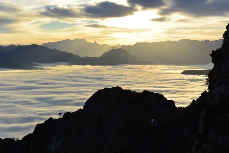 Keywords: salzburg austria unterberg fog clouds alpine sunrise
