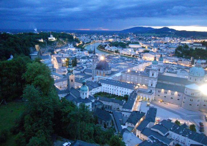 Keywords: salzburg night hohensalzburg fortress fortress view abendstimmung vision panorama