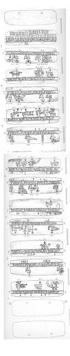 | Keywords: Samischer Runenkalender 1.jpg de Samischer Runenkalender;Material Holz Nach Granlund soll sich der Kalender in der Bibliothèque Nationale Paris Calendrier 79311 MS Scandinave 29<sup>bis</sup> befinden <ref>Er war dort im Katalog nicht zu finden </ref> Die erste Platte fehlt Der Kalender beginnt mit dem 1 Januar vielleicht auch mit dem 31 Dezember Er ist von unten nach oben und von links nach rechts zu lesen Der Kalender endet mit dem 30 Dezember Da die ersten Platte fehlt ist die Gesamtzahl der Tagesrunen nicht bekannt Er ist der einzige Kalender der auf der Gegenseite zu den Festtagen Verlängerungen aufweist die als Unglückstage gedeutet werden Es sind insgesamt 38 Sie entstammen alter astologischer Praxis und wurden als Bauernweisheit übernommen Kernbestand der später erweitert wurde waren die dies aegyptiaci die schon von Furius Dionysius Filocalus in seinem Chronograph von 354 erwähnt sind siehe Sam Owen Jansson Olycksdagar in Kulturhistorisk leksikon for nordiske middelalder Bd 12 Kopenhagen 1967 Sp 291-293 Allerdings stimmen nicht alle markierungen mit den bekannten Unglückstagen überein Auf S 167 wird Samuel Rheen zitiert der schreibt dass die Lappen einige Tage kennen an denen sie nicht jagen weil es Unglück für das Jahr bringt Ingalill och John Granlund Lapska ben- och träkalendar Stockholm 1973 S 164 “167 century 17 oder früher author <references/> PD-ineligible PD-old-100 Sami runic calendars Fingalo |