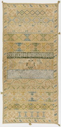 Keywords: Sampler - Google Art Project (6718060).jpg 6938587 Unknown /collection/cooper-hewitt-national-design-museum/artwork/sampler-unknown/6718060/ 75161 author /collection/cooper-hewitt-national-design-museum/ Cooper-Hewitt National Design Museum 3644669 http //www cooperhewitt org/ /collection/cooper-hewitt-national-design-museum/artwork/sampler-unknown/6718060/ 1700 18th century Medium silk embroidery on linen foundationTechnique embroidered in counted satin double running wrapped bars and stem stitches on plain weave ex coll Mrs Henry E Coe Eva Johnston Coe 6718060 False 1799 1941-69-1 http //collection cooperhewitt org/view/objects/asitem/id/75161 Bequest of Mrs Henry E Coe Sampler 1700 1800 18th century False 0 478515625 Object sampler-unknown Sampler s H x W 101 x 48 9 cm 39 3/4 x 19 1/4 in Medium silk embroidery on linen foundationTechnique embroidered in counted satin double running wrapped bars and stem stitches on plain weave ex coll Mrs Henry E Coe Eva Johnston Coe special url_id GQH5MrtPa_ajBg PD-old-100-1923 Google Art Project works by unknown artist Textiles in the Cooper “Hewitt Smithsonian Design Museum 18th-century samplers Google Art Project works in Cooper-Hewitt Smithsonian Design Museum