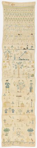 Keywords: Sampler - Google Art Project (6851349).jpg 6938587 Unknown /collection/cooper-hewitt-national-design-museum/artwork/sampler-unknown/6851349/ 176929 author /collection/cooper-hewitt-national-design-museum/ Cooper-Hewitt National Design Museum 3644669 http //www cooperhewitt org/ /collection/cooper-hewitt-national-design-museum/artwork/sampler-unknown/6851349/ 1799 1799 Medium silk embroidery on linen foundationTechnique embroidered in cross long-armed cross back and chain stitches on plain weave foundation 1080 6851349 False 1799 1981-28-326 http //collection cooperhewitt org/view/objects/asitem/id/176929 Bequest of Gertrude M Oppenheimer Sampler 1790 1800 w255 x h1080 cm 1799 False 0 25 Object sampler-unknown Sampler s 255 H x W 107 3 x 25 4 cm 42 1/4 x 10 in I C P Medium silk embroidery on linen foundationTechnique embroidered in cross long-armed cross back and chain stitches on plain weave foundation special url_id 8gEk6Yoq-NNpmQ PD-old-100-1923 Google Art Project works by unknown artist Textiles in the Cooper “Hewitt Smithsonian Design Museum 1790s samplers Google Art Project works in Cooper-Hewitt Smithsonian Design Museum 1799 works