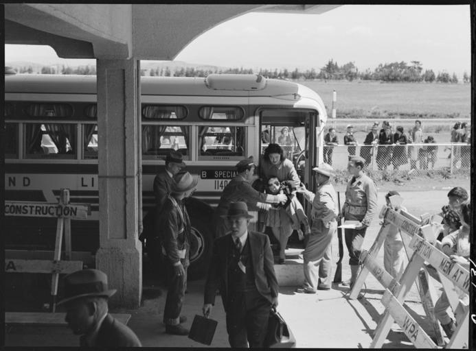 | Keywords: San Bruno, California. The last family off of the bus from San Francisco, have just arrived at this . . . - NARA - 537488.jpg Scope and content The full caption for this photograph reads San Bruno California The last family off of the bus from San Francisco have just arrived at this assembly center which will be their home until relocation centers inland have been established and are ready for occupancy General notes 537488 Local identifier 210-G-C136 Department of the Interior War Relocation Authority 02/16/1944 - 06/30/1946 NARA-Author Lange Dorothea 1895-1965 Photographer 1372774 <br /> Still Picture Records Section Special Media Archives Services Division NWCS-S National Archives at College Park 8601 Adelphi Road College Park MD 20740-6001 1942-04-29 Record group Record Group 210 Records of the War Relocation Authority 1941 - 1989 Record group ARC 537 Central Photographic File of the War Relocation Authority compiled 1942 - 1945 Series ARC 536000 File unit File unit ARC Variant control numbers NAIL Control Number NWDNS-210-G-C136 Other versions <gallery> File San_Bruno _California _The_last_family_off_of_the_bus_from_San_Francisco _have_just_arrived_at_this_ _ _ _-_NARA_-_537488 tif tif File San_Bruno _California _The_last_family_off_of_the_bus_from_San_Francisco _have_just_arrived_at_this_ _ _ _-_NARA_-_537488 jpg jpg </gallery> NARA-cooperation PD-USGov Dorothea Lange Tanforan Assembly Center |
