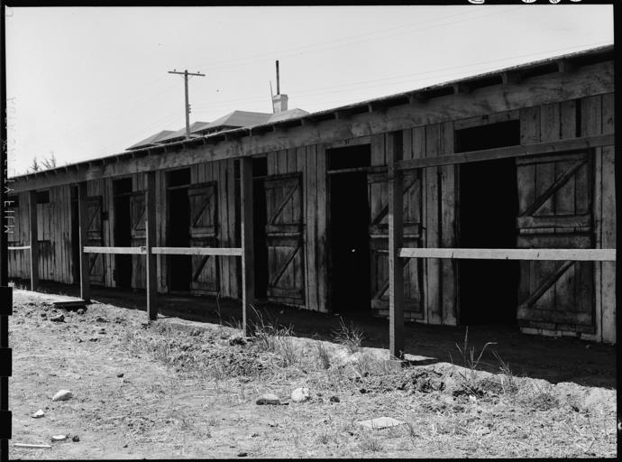 | Keywords: San Bruno, California. Near view of horse-stall, left from the days when what is now Tanforan Assem . . . - NARA - 537930.jpg Scope and content The full caption for this photograph reads San Bruno California Near view of horse-stall left from the days when what is now Tanforan Assembly center was the famous Tanforan Race Track Most of these stalls have been converted into family living quarters for Japanese General notes 537930 Local identifier 210-G-C630 Department of the Interior War Relocation Authority 02/16/1944 - 06/30/1946 NARA-Author Lange Dorothea 1895-1965 Photographer 1372774 <br /> Still Picture Records Section Special Media Archives Services Division NWCS-S National Archives at College Park 8601 Adelphi Road College Park MD 20740-6001 1942-06-16 Record group Record Group 210 Records of the War Relocation Authority 1941 - 1989 Record group ARC 537 Central Photographic File of the War Relocation Authority compiled 1942 - 1945 Series ARC 536000 File unit File unit ARC Variant control numbers NAIL Control Number NWDNS-210-G-C630 Other versions <gallery> File San_Bruno _California _Near_view_of_horse-stall _left_from_the_days_when_what_is_now_Tanforan_Assem_ _ _ _-_NARA_-_537930 tif tif File San_Bruno _California _Near_view_of_horse-stall _left_from_the_days_when_what_is_now_Tanforan_Assem_ _ _ _-_NARA_-_537930 jpg jpg </gallery> NARA-cooperation PD-USGov Dorothea Lange Tanforan Assembly Center Stables in the United States |