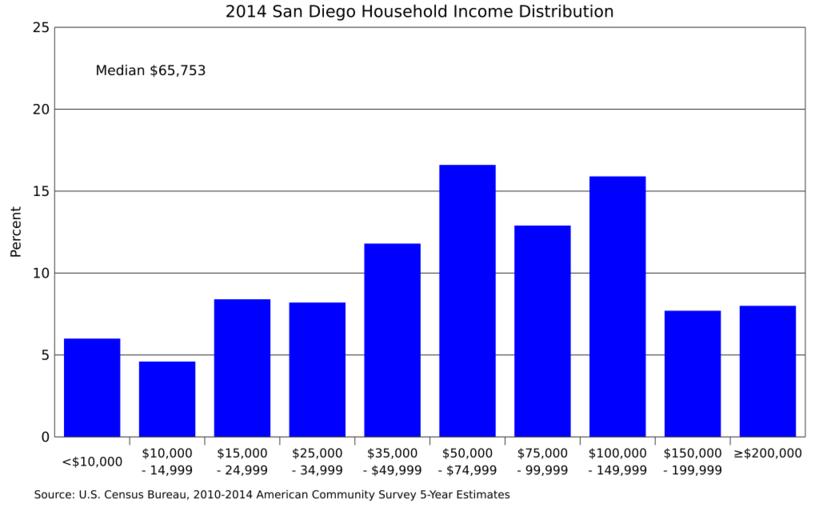 | Keywords: San Diego household income distribution.svg translate yes en Distribution of household income in San Diego Data from http //factfinder census gov/bkmk/table/1 0/en/ACS/14_5YR/DP03/1600000US2743000 US Census in 2014 inflation adjusted dollars 2016-06-04 own Delphi234 other versions cc-zero Income distribution in the United States Economy of San Diego 2014 in San Diego | ||||