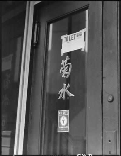 Keywords: San Francisco, California. Entrance to a restaurant vacated by a proprietor of Japanese descent pri . . . - NARA - 536020.jpg Scope and content The full caption for this photograph reads San Francisco California Entrance to a restaurant vacated by a proprietor of Japanese descent prior to evacuation Evacuees of Japanese ancestry will be housed in War Relocation Authority centers where they will spend the duration General notes 536020 Local identifier 210-G-A42 Department of the Interior War Relocation Authority 02/16/1944 - 06/30/1946 NARA-Author Lange Dorothea 1895-1965 Photographer 1372774 <br /> Still Picture Records Section Special Media Archives Services Division NWCS-S National Archives at College Park 8601 Adelphi Road College Park MD 20740-6001 1942-04-13 Record group Record Group 210 Records of the War Relocation Authority 1941 - 1989 Record group ARC 537 Central Photographic File of the War Relocation Authority compiled 1942 - 1945 Series ARC 536000 File unit File unit ARC Variant control numbers NAIL Control Number NWDNS-210-G-A42 Other versions <gallery> File San_Francisco _California _Entrance_to_a_restaurant_vacated_by_a_proprietor_of_Japanese_descent_pri_ _ _ _-_NARA_-_536020 tif tif File San_Francisco _California _Entrance_to_a_restaurant_vacated_by_a_proprietor_of_Japanese_descent_pri_ _ _ _-_NARA_-_536020 jpg jpg </gallery> NARA-cooperation PD-USGov Japanese style restaurants in California Dorothea Lange Community Chest |