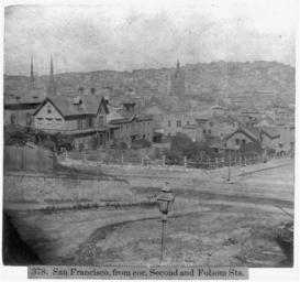 Keywords: San Francisco corner 2nd and Folsom.jpg en View in San Francisco from the corner of Second Street and Folsom Street Albumen print one half of a stereoscopic view Courtesy of The Library of Congress Washington D C http //lcweb2 loc gov/cgi-bin/query/I fsaall brum detr swann look gottscho pan horyd genthe var cai cd hh yan lomax ils prok brhc nclc matpc iucpub tgmi lamb hec krb 1 /temp/~pp_uOsf displayType 1 m856sd cph m856sf 3a28279 mdb fsaall brum detr swann look gottscho pan horyd genthe var cai cd hh yan lomax ils prok brhc nclc matpc iucpub tgmi lamb hec krb Lawrence Houseworth 1866 PD-old Cityscapes of San Francisco 1866 1866 in San Francisco Black and white photographs of San Francisco City |