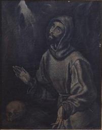 | Keywords: San Francisco de Asís (Museo de Santa Cruz de Toledo).jpg La obra representa a San Francisco de Asís fundador de la Orden de los franciscanos y fue atribuida por Camon Aznar aunque dudosamente según la mayoría de los autores en la actualidad a El Greco Segunda mitad del siglo XVII oil on canvas Size cm 83 105 Institution Museo de Santa Cruz Toledo http //ceres mcu es/pages/Main accession number DO1204 http //ceres mcu es/pages/Main PD-old-100 Paintings of Francis of Assisi in Spain 17th-century paintings of Francis of Assisi Paintings attributed to El Greco 17th-century paintings in the Museo de Santa Cruz Toledo |