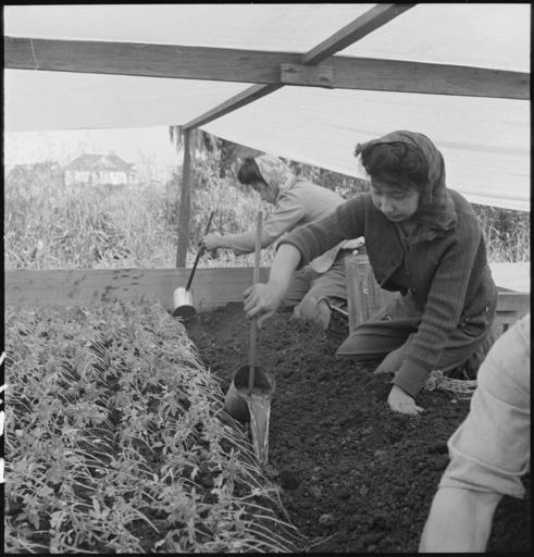 Keywords: San Leandro, California. Watering young plants on a farm in Alameda County, California, prior to ev . . . - NARA - 536437.jpg Scope and content The full caption for this photograph reads San Leandro California Watering young plants on a farm in Alameda County California prior to evacuation Evacuees of Japanese ancestry will be housed in War Relocation Authority centers for the duration General notes 536437 Local identifier 210-G-A546 Department of the Interior War Relocation Authority 02/16/1944 - 06/30/1946 NARA-Author Lange Dorothea 1895-1965 Photographer 1372774 <br /> Still Picture Records Section Special Media Archives Services Division NWCS-S National Archives at College Park 8601 Adelphi Road College Park MD 20740-6001 1942-04-26 Record group Record Group 210 Records of the War Relocation Authority 1941 - 1989 Record group ARC 537 Central Photographic File of the War Relocation Authority compiled 1942 - 1945 Series ARC 536000 File unit File unit ARC Variant control numbers NAIL Control Number NWDNS-210-G-A546 Other versions <gallery> File San_Leandro _California _Watering_young_plants_on_a_farm_in_Alameda_County _California _prior_to_ev_ _ _ _-_NARA_-_536437 tif tif File San_Leandro _California _Watering_young_plants_on_a_farm_in_Alameda_County _California _prior_to_ev_ _ _ _-_NARA_-_536437 jpg jpg </gallery> NARA-cooperation PD-USGov Japanese American internment processing in San Leandro California Agriculture in California Women at work in California Dorothea Lange Black and white photographs of women