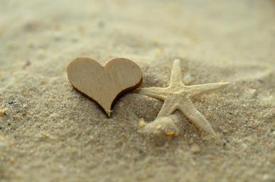 Keywords: sand heart starfish beach love holiday summer feelings still life i love you symbol affection holiday greetings