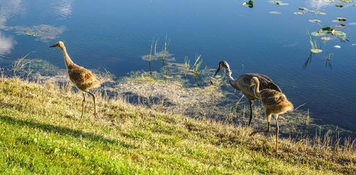 Keywords: sand hill cranes baby parents nature water outdoors beak avian birdwatching feathered ornithology bird