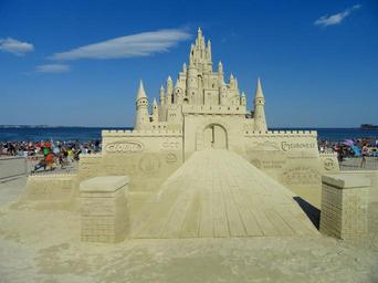 Keywords: sand sculpture beach sky sun design scene peaceful castle artistic skill patience