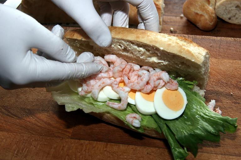 Keywords: sandwich food eggs prawns cooking food production