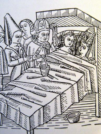 Keywords: Sängledning.JPG sv En brudpars äkta bädd invigs av en biskop Tyskt träsnitt från 1400-talet 2013-01-08 23 29 50 German wooden carving 15 th century author PD-old-100-1923 Uploaded with UploadWizard PD-Art PD-old-100 Bishops in art 15th-century woodcuts |