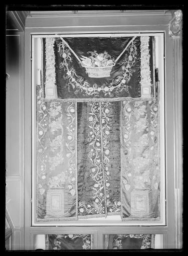 | Keywords: Sängomhänge, Torpa stenhus - Livrustkammaren - 60403.tif Del av sängomhänge till stolpsäng Sängomhänget består av fyra våder De två yttre och en av mittvåderna är i benvitt siden med invävt mönster i form av stiliserade blommor i geometriska former Den andra mittvåden är av svart sidenatlas med invävda blomsterkvistar i gul cerise vit och grön silke Överst är den svarta våden lappad med en remsa i samma tyg Vit vådbredd ytterst 465 mm i mitten 225 mm Svart vådbredd 500 mm <br/><br/>Franskant runt om långsidorna och nedre kortsidan av svart beige och vit silke bredd 18 mm <br/><br/>Längs överkanten elva metallringar av vilka nio är av gul grövre metall med raka kanter Två är av vit metall Fästa med beigefärgat garn eller beige/svarta sidenband original caption silk Färg benvit vit d1 - dräkt - yttermaterial material siden - metal Färg gul vit d5 - dräkt - knappar och spännen material metall g 560 size mm 1720 1690 LRK Himmelssängar place of origin original filename LN_B01917_004797 56192 inventory number LRK 19612 60403 CC0 Sängomhänge Torpa stenhus - Livrustkammaren - 60403-negative tif <gallery caption Different images of same object > File Sängomhänge Torpa stenhus - Livrustkammaren - 26019 tif File Sängomhänge Torpa stenhus - Livrustkammaren - 34581 tif File Sängomhänge Torpa stenhus - Livrustkammaren - 68965 tif File Sängomhänge Torpa stenhus - Livrustkammaren - 43139 tif File Sängomhänge Torpa stenhus - Livrustkammaren - 51699 tif File Sängomhänge Torpa stenhus - Livrustkammaren - 60260 tif File Sängomhänge Torpa stenhus - Livrustkammaren - 68822 tif </gallery> Media contributed by LSH unmatched material Media contributed by LSH unmatched objKeyword Media contributed by LSH without any categories Media contributed by LSH 2013-10 |