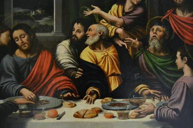 | Keywords: Sant Sopar (detall) de Joan de Joanes, Museu de Belles Arts de València.JPG La obra muestra a Jesucristo y a sus doce apóstoles cenando en la víspera de la pasión y muerte del Salvador ca Sant Sopar detall de Joan de Joanes oli sobre taula Museu de Belles Arts de València Joan de Joanes va pintar des de molt jove en col·laboració amb son pare i aquesta és la primera obra de la qual consta que és un treball exclusivament seu Va pertànyer al retaule que els argenters de València van dedicar al seu patró sant Eloi a la parròquia de santa Caterina El pintor tradueix en imatges el moment en què Crist anuncia als seus deixebles que un d'ells el trairà mereix especial atenció el tractament naturalista dels elements del bodegó Siglo XVI oil on panel Size cm 84 92 Institution Museo de Bellas Artes de Valencia http //museobellasartesvalencia gva es/index php option com_content view article id 603 3Asanta-cena catid 54 3Arenacimiento-pleno Itemid 80 lang es object history exhibition history credit line accession number 305 own PD-old-100 cc-by-sa-3 0 Santa Cena de Joan de Joanes Museu de Belles Arts de València |