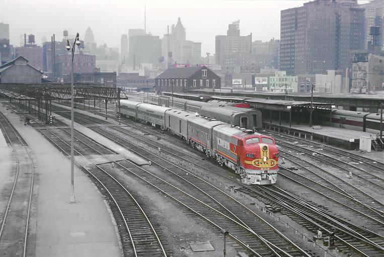 MAKE A MEME View Large Image These are Roger Puta's photos. 2. ATSF 45C (F7A) with Train 23, The Grand Canyon, departing Dearborn Station, Chicago, IL on February 19, 1968. Notice that the double slip switch in front of 45C has movable frogs moved by pneumatic switch ...