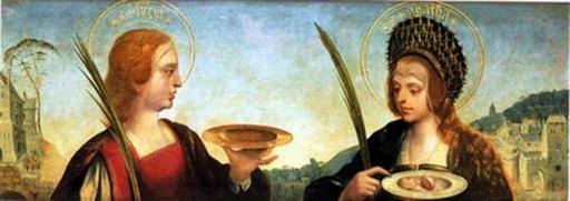 | Keywords: Santa Luzia e Santa Ágata.jpg pt Este quadro bem como Santa Margarida e Santa Maria Madalena Museu Nacional de Arte Antiga provem da ermida lisboeta do Paraíso Duas outras pinturas que hoje se encontram no Museu de Posen na Polónia Santa Apolónia e Santa Inês e Santa Catarina e Santa Bárbara com idêntico formato e composição foram compradas em Lisboa no ano de 1844 pelo Conde Atanazy Raczynski tendo pertencido à Galeria do Marquês de Penalva Carl Justi atribuíu este conjunto a Velascus e José de Figueiredo aludindo às pinturas de Posen menciona o nome de Cristóvão de Figueiredo Luís Reis-Santos lançou a hipótese de as quatro pinturas terem constituído as predelas do retábulo do Paraíso Museu Nacional de Arte Antiga atribuído a Gregório Lopes Vítor Serrão in catálogo da exposição No Tempo das Feitorias subscreve a opinião de Reis-Santos integrando-os na obra de Gregório Lopes 2013-01-08 23 45 34 IGESPAR Creator Gregório Lopes PD-old-100 Uploaded with UploadWizard Gregório Lopes Paintings of Saint Lucy Paintings of Saint Agatha of Sicily |