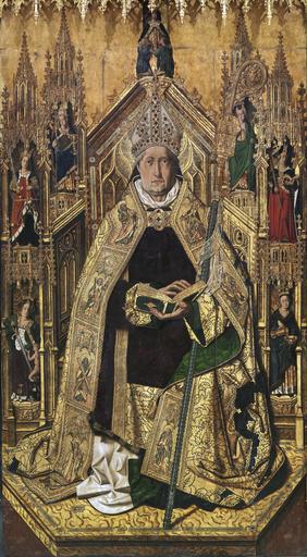 Keywords: Santo Domingo de Silos entronizado como obispo, por Bartolomé Bermejo.jpg Artwork Q9074362 Creator Bartolomé Bermejo La obra representa a Santo Domingo de Silos entronizado como obispo y es la tabla central del retablo de Santo Domingo de Silos de la parroquia de Daroca en la provincia de Zaragoza El santo aparece vestido de obispo y sentado en un trono gótico decorado con estatuas policromadas de las siete virtudes las teologales Fe Esperanza y Caridad y las cardinales Prudencia Justicia Fortaleza y Templanza Destaca especialmente el extremo realismo del rostro de Santo Domingo y la fuerza de su mirada características propias del arte flamenco que en este caso no son verídicas sino ideales ya que fue en el siglo XI cuando el monje Domingo fundó cerca de Burgos el Monasterio de Silos donde vivió Este realismo contrasta con el abundante uso del oro que como se había especificado en el contrato no aparece embutido como es habitual en Aragón circa 1474 1477 oil on panel Size cm 130 242 Institution Museo del Prado Sala 051A accession number P01323 object history credit line https //www museodelprado es/coleccion/obra-de-arte/santo-domingo-de-silos-entronizado-como-obispo/f4cd7ad1-cc50-48fe-86f5-71dfe6672db1 https //www museodelprado es/coleccion/galeria-on-line/galeria-on-line/obra/santo-domingo-de-silos-entronizado-como-obispo/ Galería online Museo del Prado PD-old-100 Santo Domingo de Silos entronizado como obispo de Bartolomé Bermejo Museo del Prado Taken with Hasselblad H4D-50 |