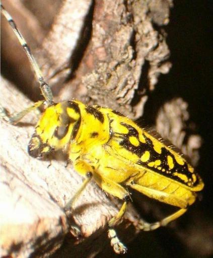 Keywords: SaperdaScalaris.JPG Létracincér Saperda scalaris Nevét a háti szárnyfedők középvonalán végigfutó jellegzetes sárga mintázatról nyerte mely öt-hatfokú létrát formáz scalae -arum f lat létra lépcső Lelőhely Kamaraerdő Budapest Magyarország Gubbubu 18 51 12 May 2006 UTC 2006-04-26 own assumed Gubbubu Saperda scalaris