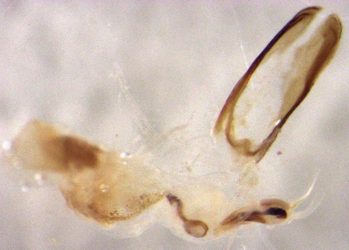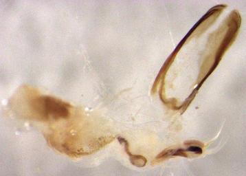 | Keywords: Saphobius fulvipes (internal sac).jpg en Saphobius fulvipes internal sac dissected out of aedeagus photo taken by me S E Thorpe 2012-11-14 NEW ZEALAND WO Maungatautari South cell inside cell transect 1 pitfall trap F 18 Dec 2011 - 20 Jan 2012 C H Watts Saphobius fulvipes |
