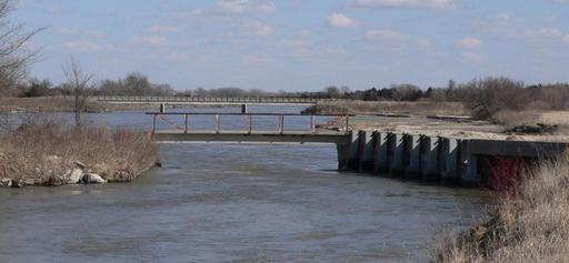 Keywords: Sargent bridge S diversion 1.JPG Middle Loup River just below w Sargent Bridge south of Sargent Nebraska This weir extends from the south bank to a small island in midchannel; to the right of the footbridge across the weir a set of wooden headgates allow water to be admitted to an irrigation canal The modern bridge carrying U S Highway 183 across the river can be seen in the background own Ammodramus 2010-03-25 Pictures by Ammodramus Taken with Panasonic Lumix DMC-FZ20 Sargent Bridge diversion structures Bridges in Custer County Nebraska