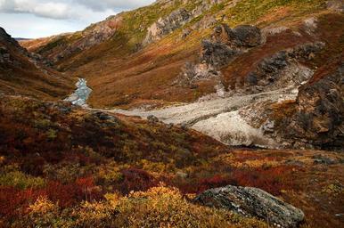 Keywords: Savage River Beyond bridge Denali National Park Preserve Alaska Fall Autumn Foliage