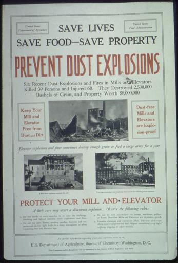 Keywords: "Save Lives, Save Food- Save Property. Prevent Dust Explosions...Keep your mill and elevator free from dust and dirt.... - NARA - 512690.jpg Scope and content General notes 512690 Local identifier 4-P-252 U S Food Administration Educational Division Advertising Section 01/15/1918 - 01/1919 Still Picture Records Section Special Media Archives Services Division NWCS-S National Archives at College Park 8601 Adelphi Road College Park MD 20740-6001 other date circa 1917 1919 Record group Record Group 4 Records of the U S Food Administration 1917 - 1920 Record group ARC 333 World War I Posters compiled 1917 - 1919 Series ARC 512439 File unit File unit ARC Variant control numbers NAIL Control Number NWDNS-4-P-252 Other versions <gallery> File Save_Lives _Save_Food-_Save_Property _Prevent_Dust_Explosions Keep_your_mill_and_elevator_free_from_dust_and_dirt _-_NARA_-_512690 tif tif File Save_Lives _Save_Food-_Save_Property _Prevent_Dust_Explosions Keep_your_mill_and_elevator_free_from_dust_and_dirt _-_NARA_-_512690 jpg jpg </gallery> NARA-cooperation PD-USGov World War I posters of the United States Dust explosions |