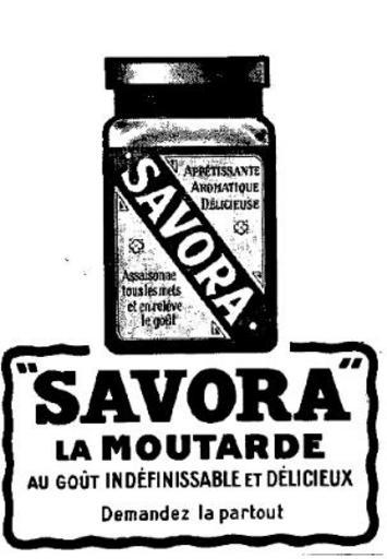 | Keywords: Savora 1921.jpg fr Encart publicitaire paru dans le magazine français Je sais tout 1921 1921-12 Published in Je sais tout a French magazine 1921 author other versions Custom license marker 2014 10 15 PD-Old Uploaded with UploadWizard Advertising in France Mustard from France 1921 1921 in France Je sais tout 1921 advertisements |