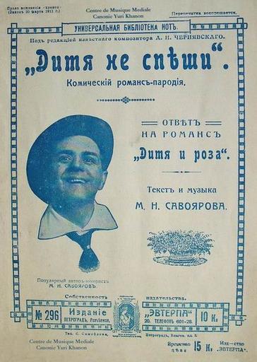 Π°ΠΈΠ»Π° ΠΡΠ·ΠΌΠΈΠ½Π° ΠΏΠ΅Ρ Π²Π°Ρ ΡΡΡ Π°Π½ΠΈΡΠ° ΠΎΠ±Π»ΠΎΠΆΠΊΠ° Π½ΠΎΡ ΠΈΠ·Π΄Π°ΡΠ΅Π»ΡΡΡΠ²Π° ΠΠ²ΡΠ΅Ρ ΠΏΠ° 1916 Π³ΠΎΠ΄ ΠΠ΅ΡΡ ΠΎΠ³Ρ Π°Π΄ en Mikhail Savoyarov is a Russian chansonnier composer poet comic actor and mime In the first quarter of 20th century he was a famous satirical singer-songwriter 2006-02-06 1910 - 1916 Π³ΠΎΠ΄ archives de --FinitoR Π½ΠΎΡΡ ΠΈΠ·Π΄Π°ΡΠ΅Π»ΡΡΡΠ²Π° ΠΠ²ΡΠ΅Ρ ΠΏΠ° ΠΊΠΎΠΌΠΈΡΠ΅ΡΠΊΠΈΠ΅ ΠΊΡΠΏΠ»Π΅ΡΡ 1916 Π³ΠΎΠ΄ ΠΠ΅ΡΡ ΠΎΠ³Ρ Π°Π΄ Π ΠΈΡ