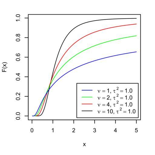 | Keywords: Scaled inverse chi squared cdf.svg scaled inverse chi-squared probability distribution 2012-10-20 22 51 42 own Created in R using the code fragment below Jheald Source library pscl svg scaled_inverse_chi_squared cdf svg width 3 height 3 pointsize 8 x <- seq 0 02 5 by 0 02 par mar c 5 4 2 2 + 0 1 plot x pigamma x 5 5 ty 'l' ylab F x lines x pigamma x 2 2 ty 'l' col red lines x pigamma x 1 1 ty 'l' col green lines x pigamma x 0 5 0 5 ty 'l' col blue legend bottomright legend expression paste nu 1 tau 2 1 0 paste nu 2 tau 2 1 0 paste nu 4 tau 2 1 0 paste nu 10 tau 2 1 0 lty 1 col c blue green red black inset 0 02 dev off cc-zero Uploaded with UploadWizard Probability distributions Images with R source code |