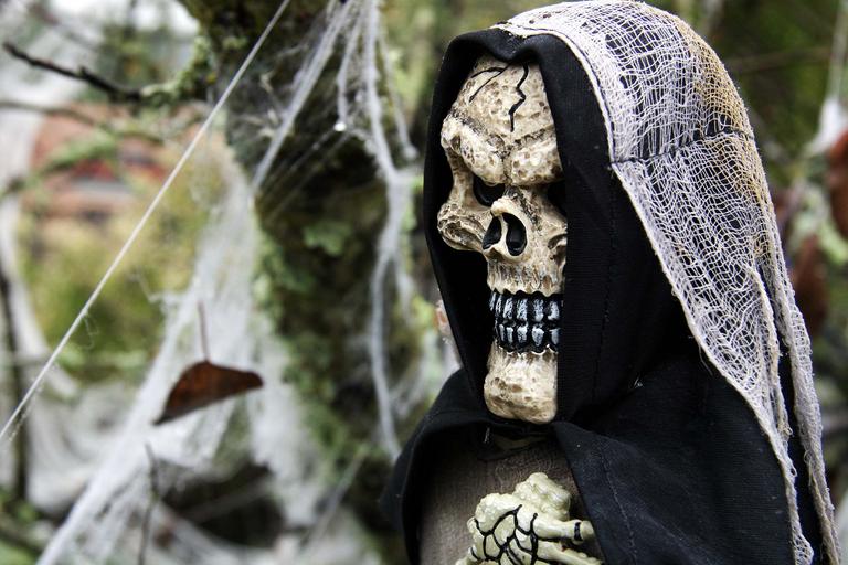 Keywords: scary forest halloween celebration party skull bones death cobweb